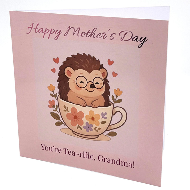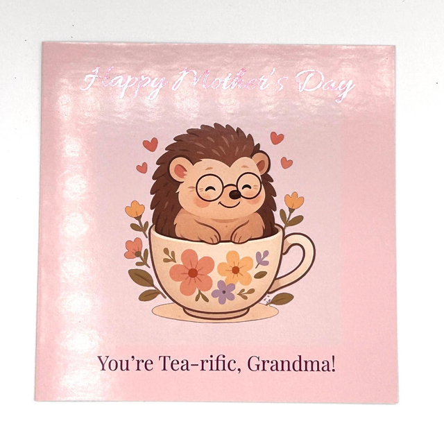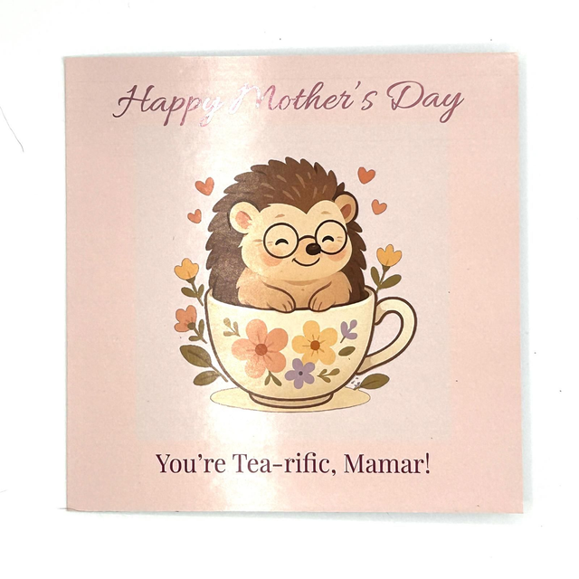 Personalised Mother’s Day Card - You’re Tea-rific - Hedgehog Teacup - Custom Name Option